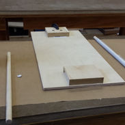 Our first prototype had a large wooden platform and a conveyor mechanism that moved a plastic sheet across the artboard to change the scene. We realized the moving pieces were too complicated and the whole prototype was too big.